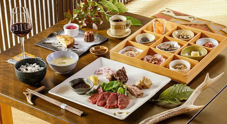 鹿肉料理を中心としたジビエレストランと、自然に囲まれた宿泊棟が魅力のオーベルジュ。 里山の景色に癒されながら、五感で楽しむ滞在が叶います。