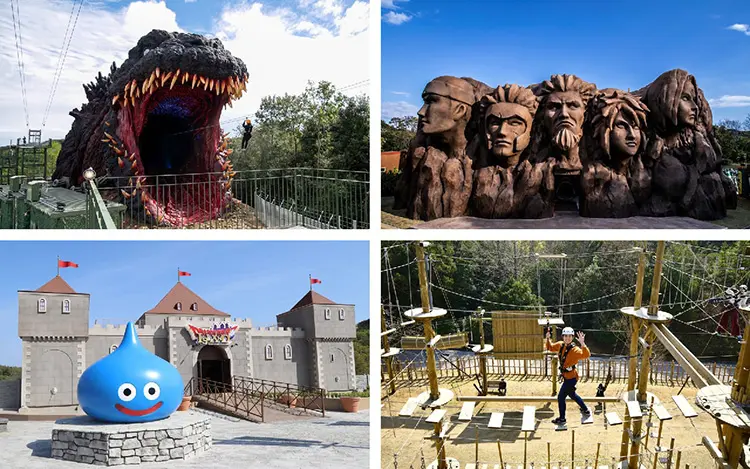 アニメやマンガの世界観を体感できる自然融合型のテーマパーク。 「ドラゴンクエスト」や「クレヨンしんちゃん」など、人気コンテンツのアトラクションが盛りだくさん。 子どもも大人も一緒に楽しめる新感覚レジャーです。
