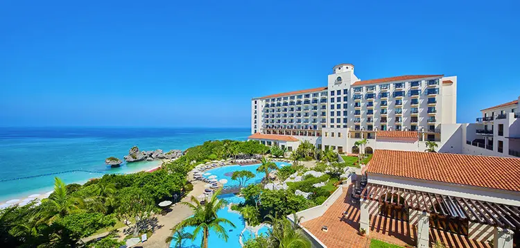 スペイン風の外観が印象的なリゾートホテル。 コバルトブルーの海を望む絶好のロケーションで、プライベートビーチや本格レストランも充実。 非日常感たっぷりの滞在が叶います。
