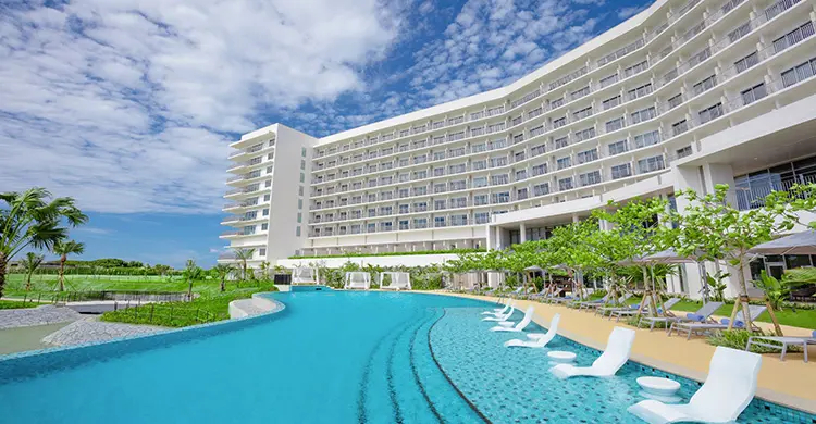 美しい瀬底ビーチのすぐそばに建つ高級リゾート。 全室オーシャンビューで、水平線に沈む夕日が格別。 プールやスパも充実しており、極上の南国ステイが楽しめます。